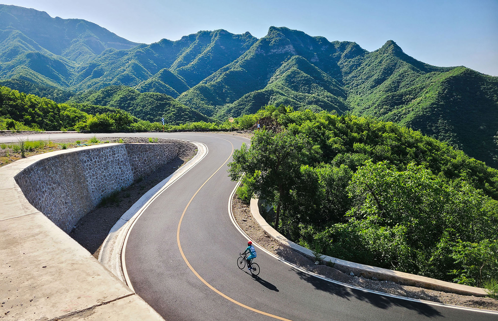 Climbing up from Xia’An Lu, the first half of the climb takes you onto quiet winding roads where you are immediately transported into rural Beijing with incredible views of the surrounding mountains.